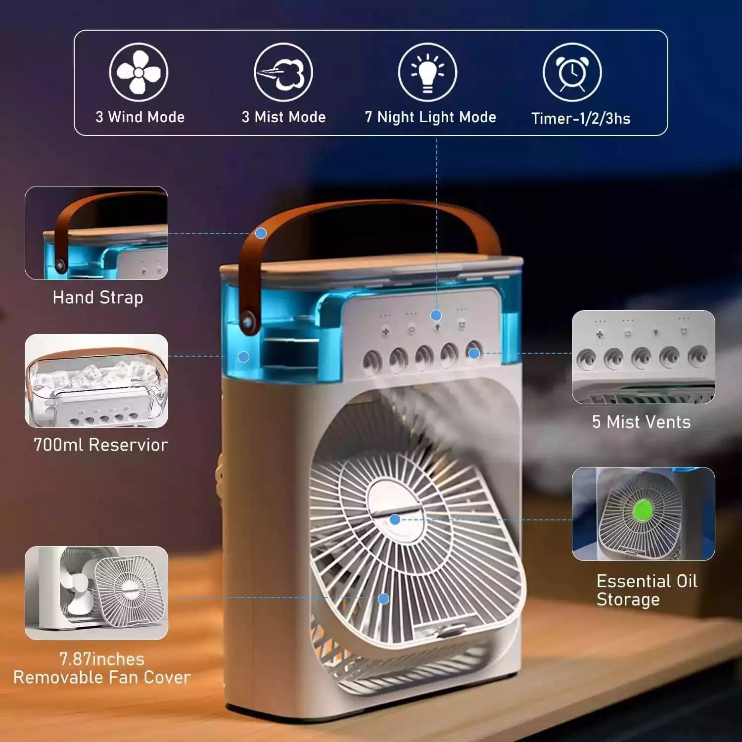 Compact & Portable: Carry it anywhere – cool any spot